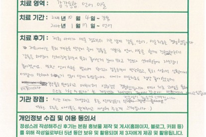 모**님은 용인이엠365의원에서 감각통합 및 언어치료를 받으셨습니다. 다음은 모**님 부모님께서 직접..