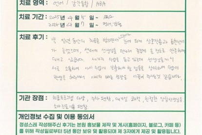 이**님은 용인이엠365의원에서 언어, 감통, 작업 인지 치료를 받으셨습니다. 다음은 이**님 부모님께서 직접..