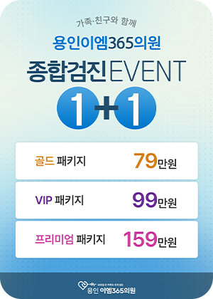 진행중 종합검진 1+1 이벤트 페이지 정보 작성자 용인이엠365 조회 96회 작성일 2026-03-10 목록 본문 가족, 친구와 함께하는 건강검진! 용인이엠365의원 종합검진 1+1 이벤트를 진행합니다.검진이 필요한 부모님, 배우자, 친구와 함께 한 번의 예약으로 두 분이 검진을 받을 수 있는 특별 이벤트입니다.❤️남녀 구분 없이 1+1 적용 가능!❤️가족, 친구, 지인 누구와도 이용 가능합니다.골드 패키지 : 79만원VIP 패키지 : 99만원프리미엄 패키지 : 159만원