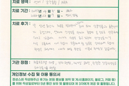 이**님은 용인이엠365의원에서 언어,감각 통합, ABA치료를 받으셨습니다. 다음은 이**님 부모님께서 직접 ..
