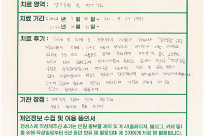 김**님은 용인이엠365의원에서 도수,근막치료를 받으셨습니다. 다음은 김**님께서 직접 작성해주신 치료 후..