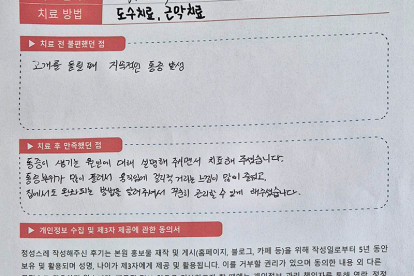 홍**님은 용인이엠365의원에서 도수,근막 치료를 받으셨습니다. 다음은 홍**님께서 직접 작성해주신 치료 ..