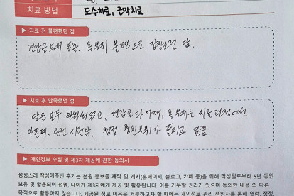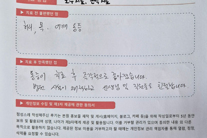 송**님은 용인이엠365의원에서 도수, 근막치료를 받으셨습니다. 다음은 송**님께서 직접 작성해주신 치료 ..