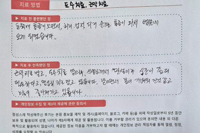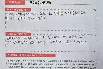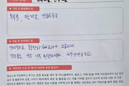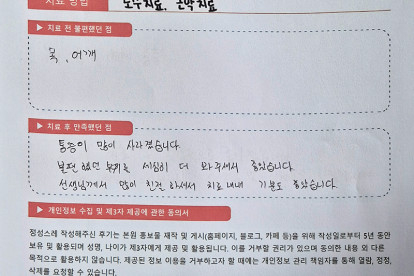 송**님은 용인이엠365의원에서 도수, 근막치료를 받으셨습니다. 다음은 송**님께서 직접 작성해주신 치료 ..
